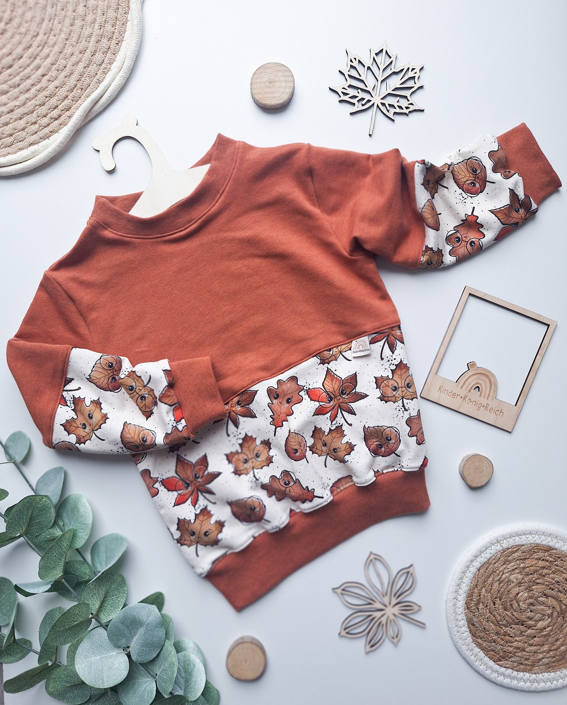 Normal geschnittener Sweater aus French Terry "Terracotta" mit passenden Herbstblättern.