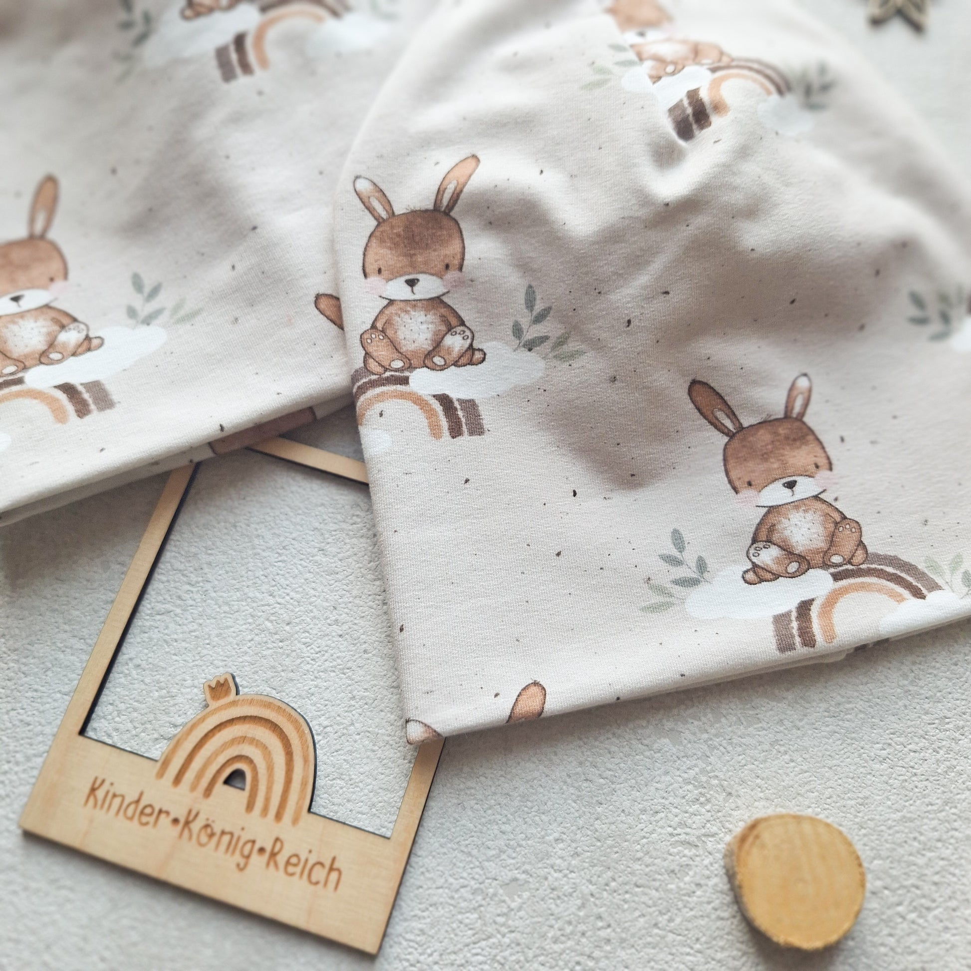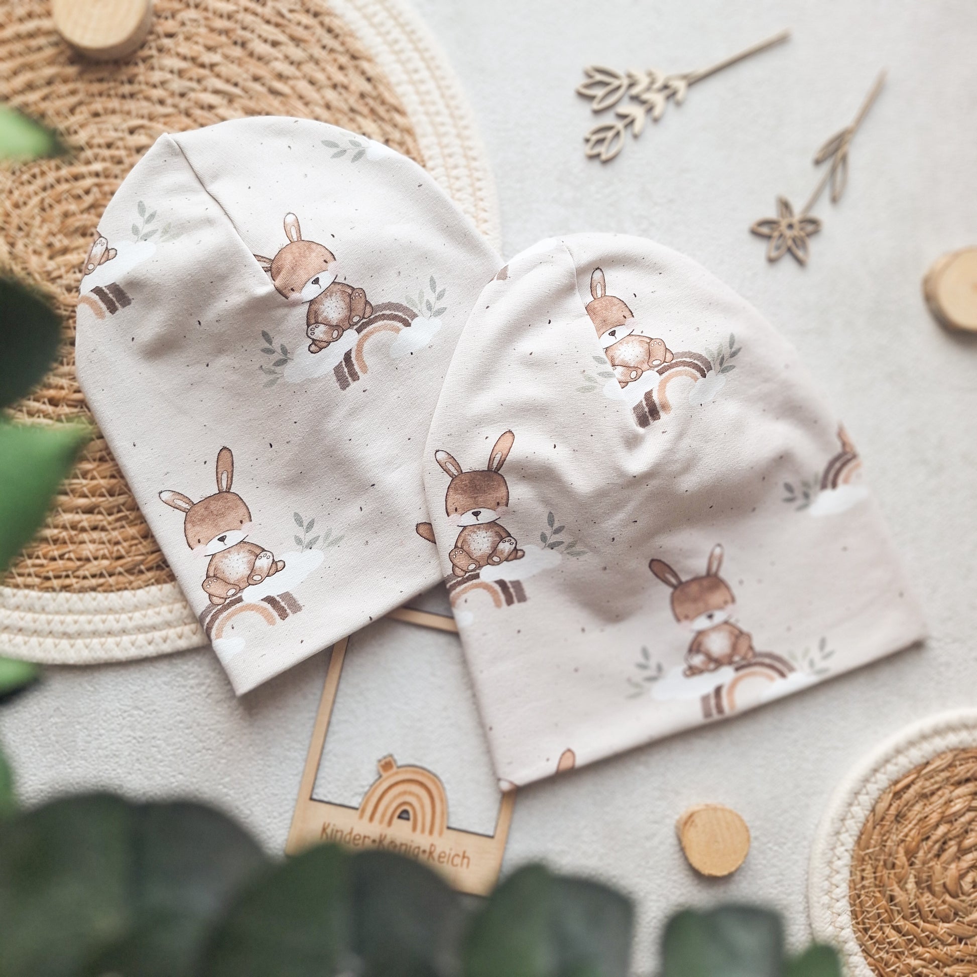 Beanie aus Bio-French Terry mit süßem Häschenmotiv.