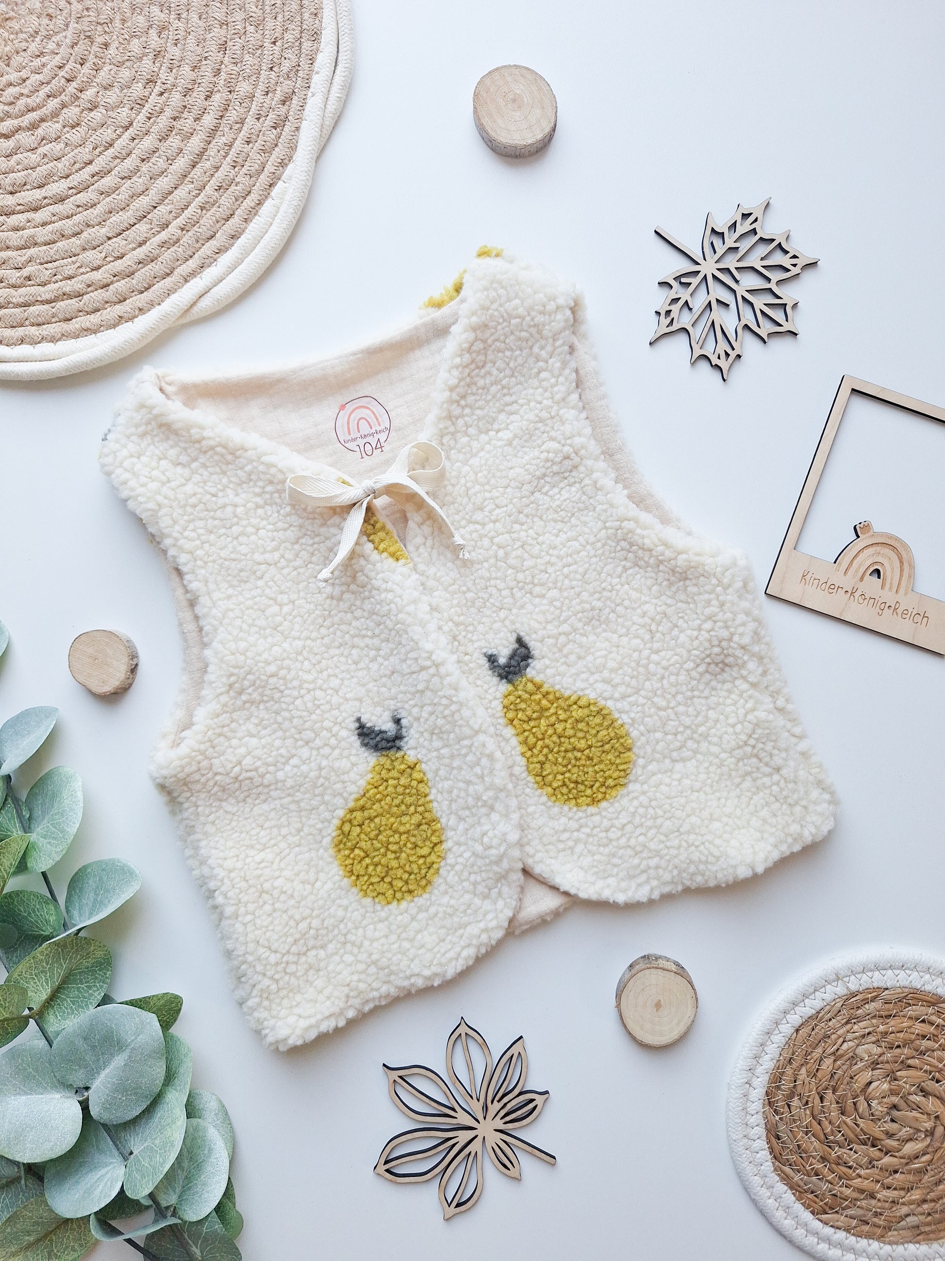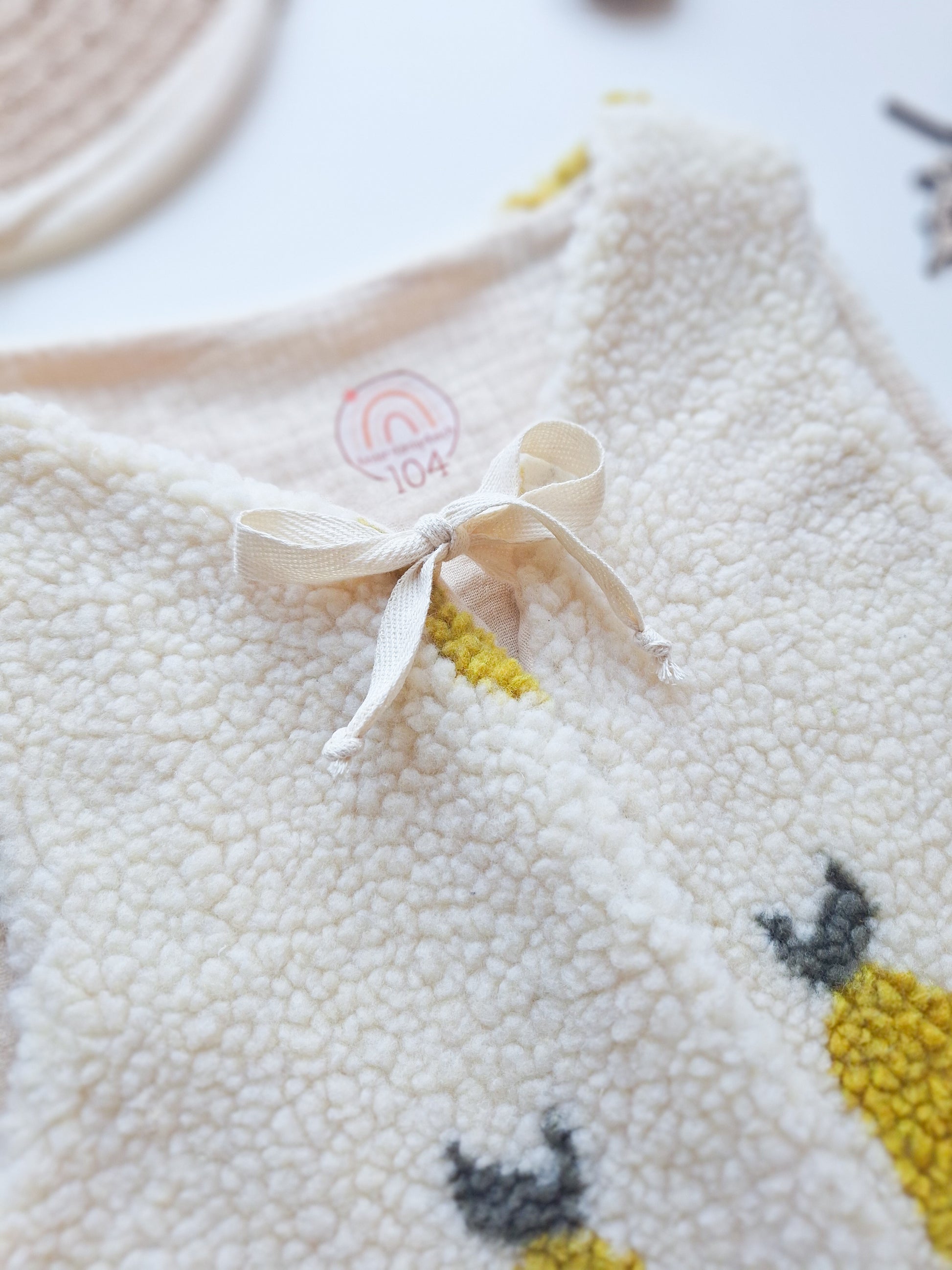 Weste aus Teddyplüsch mit Schleife. Gefüttert mit Musselin.