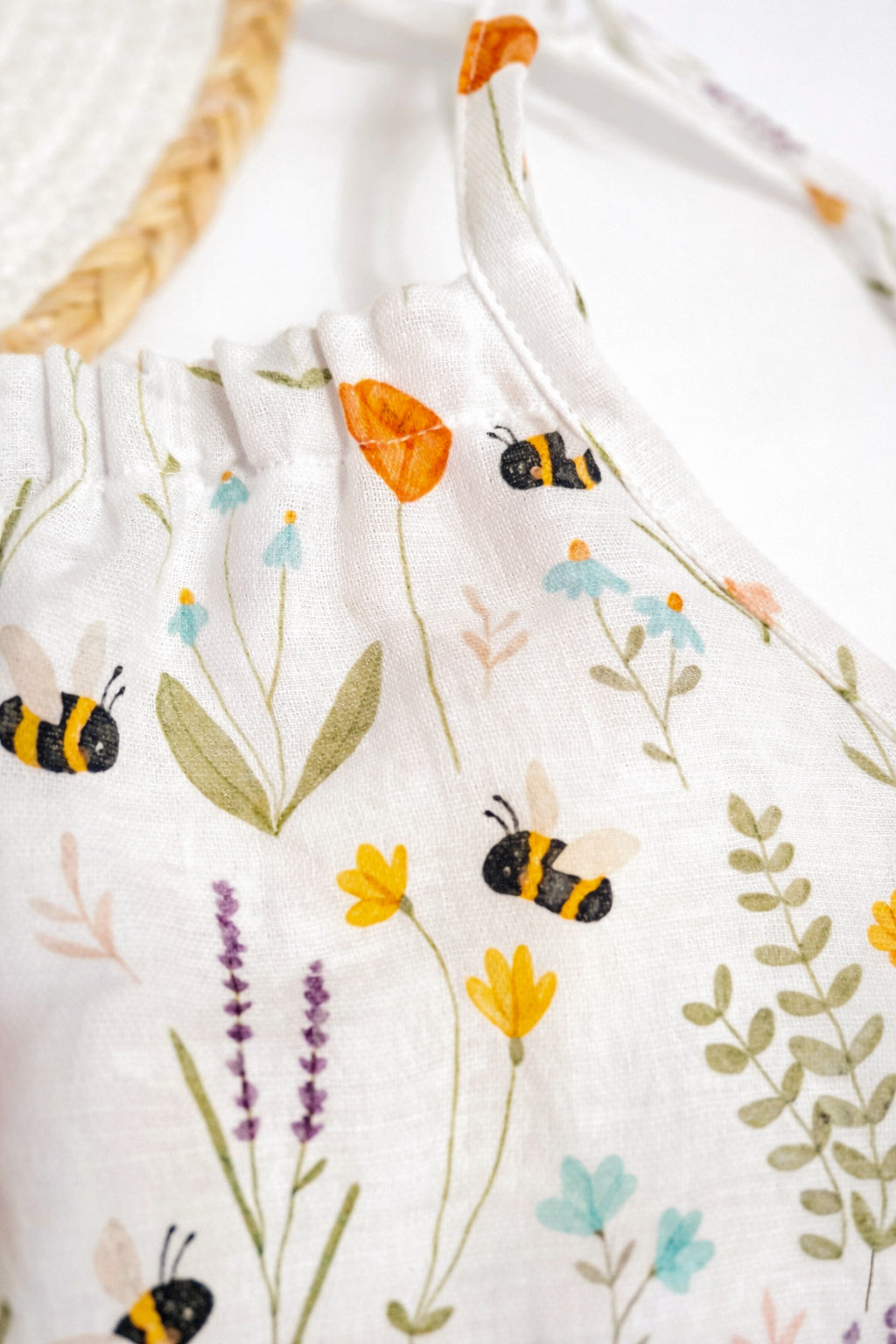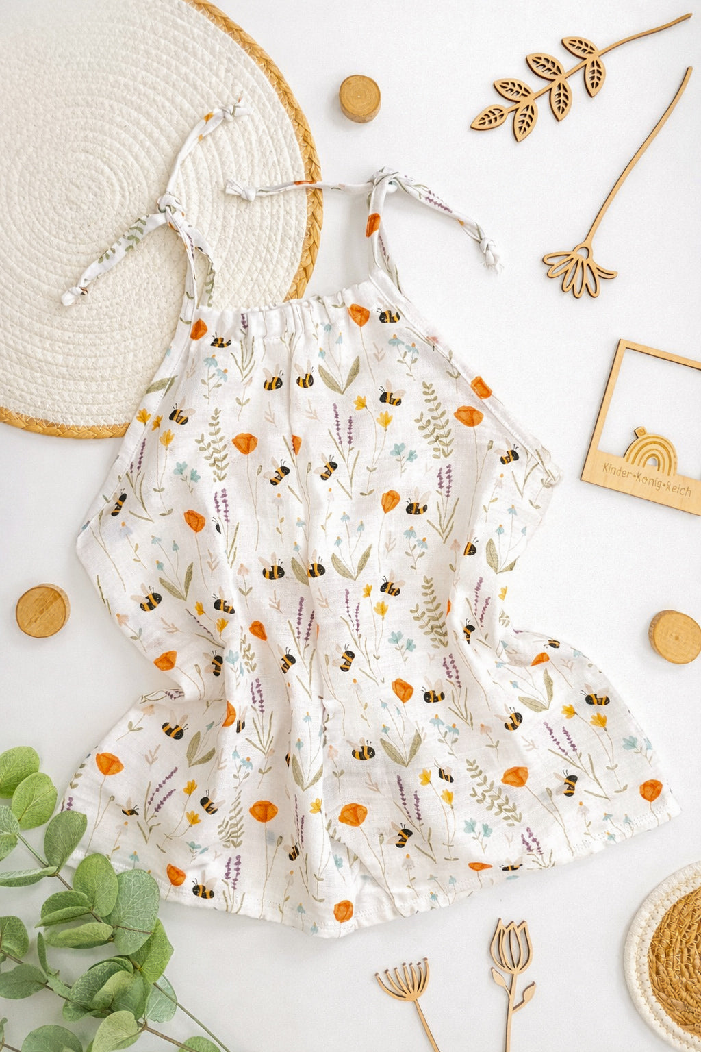 Luftiger Romper mit Bindebändern an den Schultern und weitem Bein.