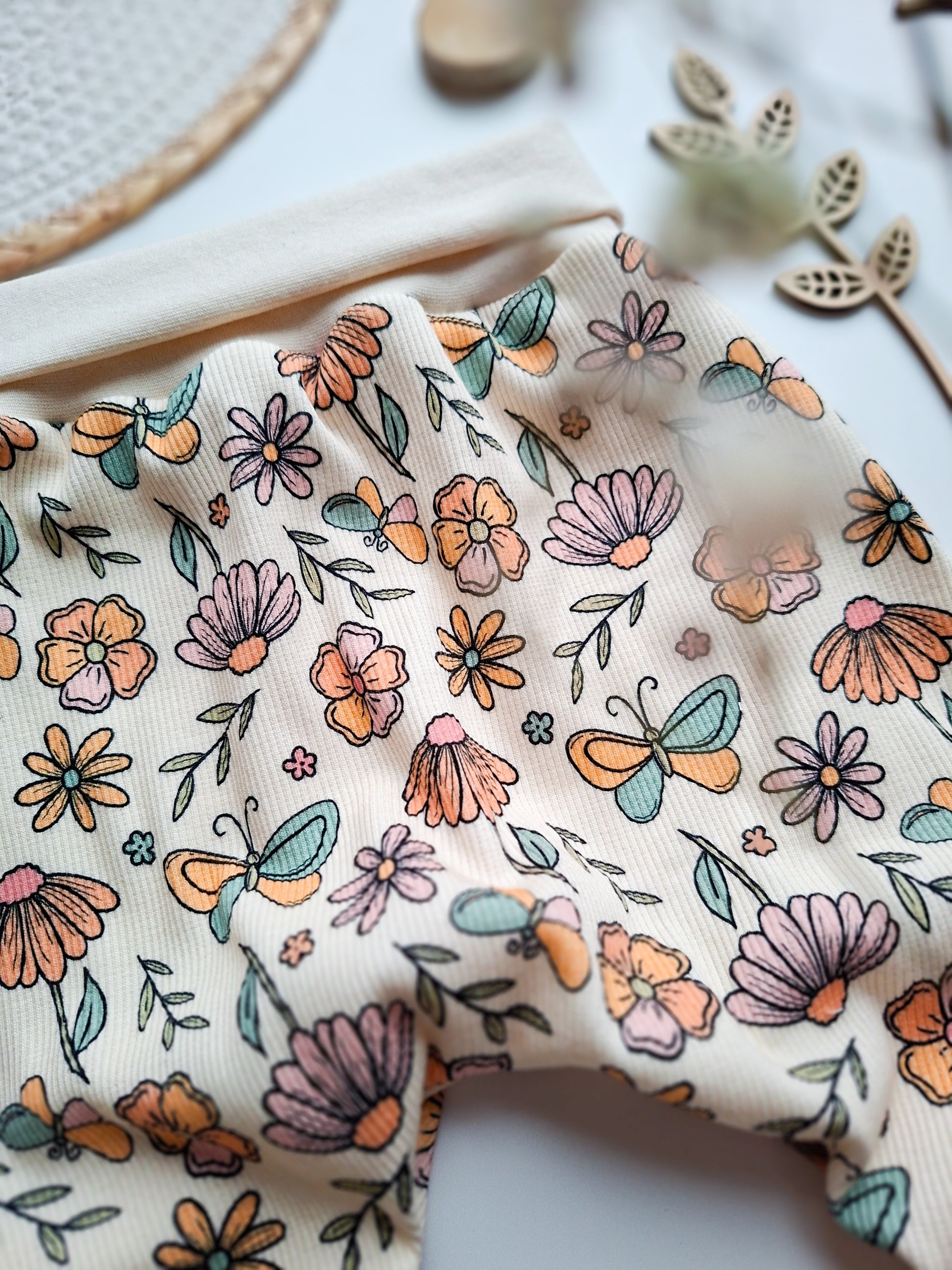 Blumige, mitwachsende Pumphose aus Ribjersey.