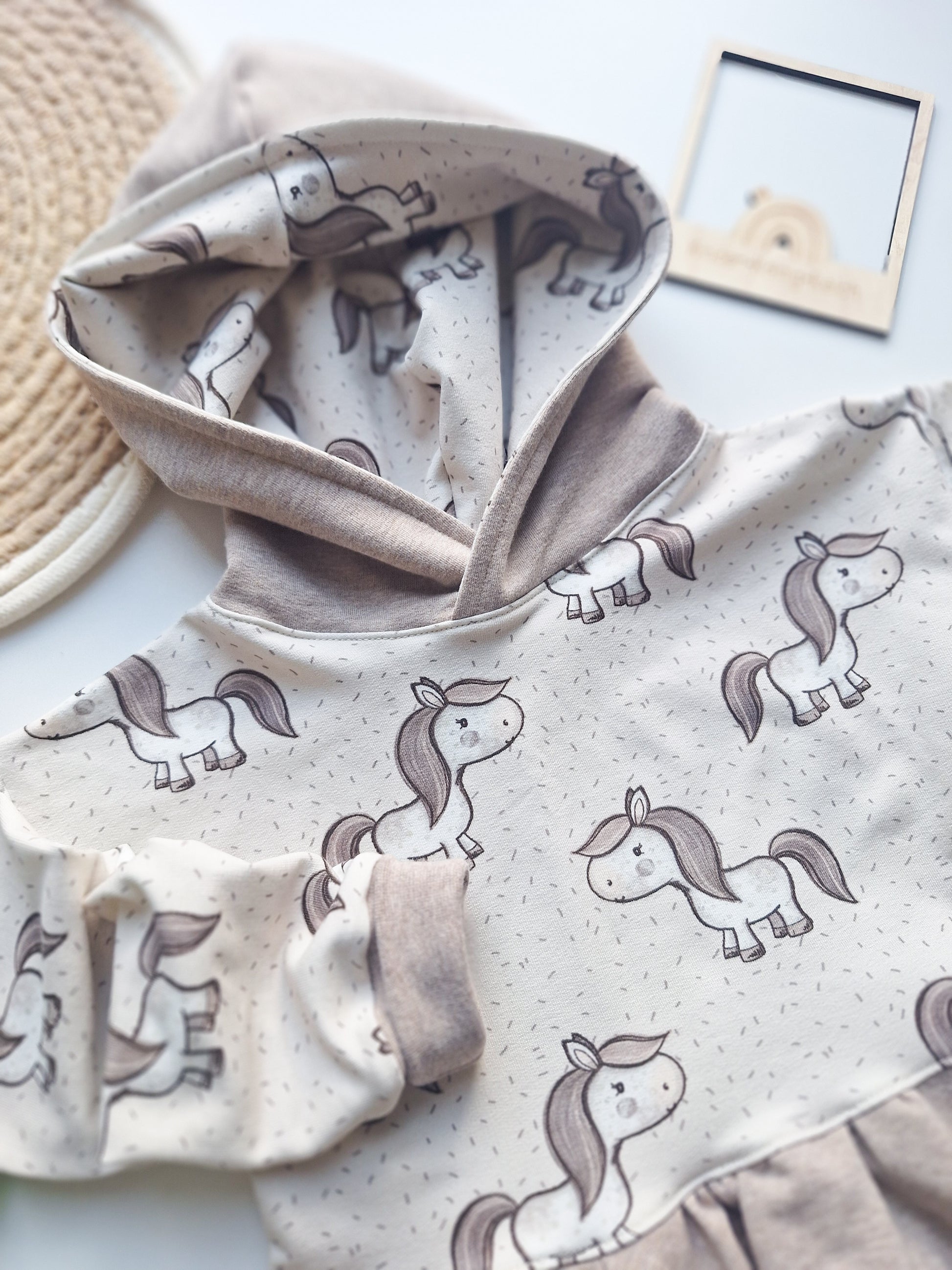 Süßer Sweater mit Kapuze und Tellerrock. Der Rockteil dreht sich wunderbar mit.